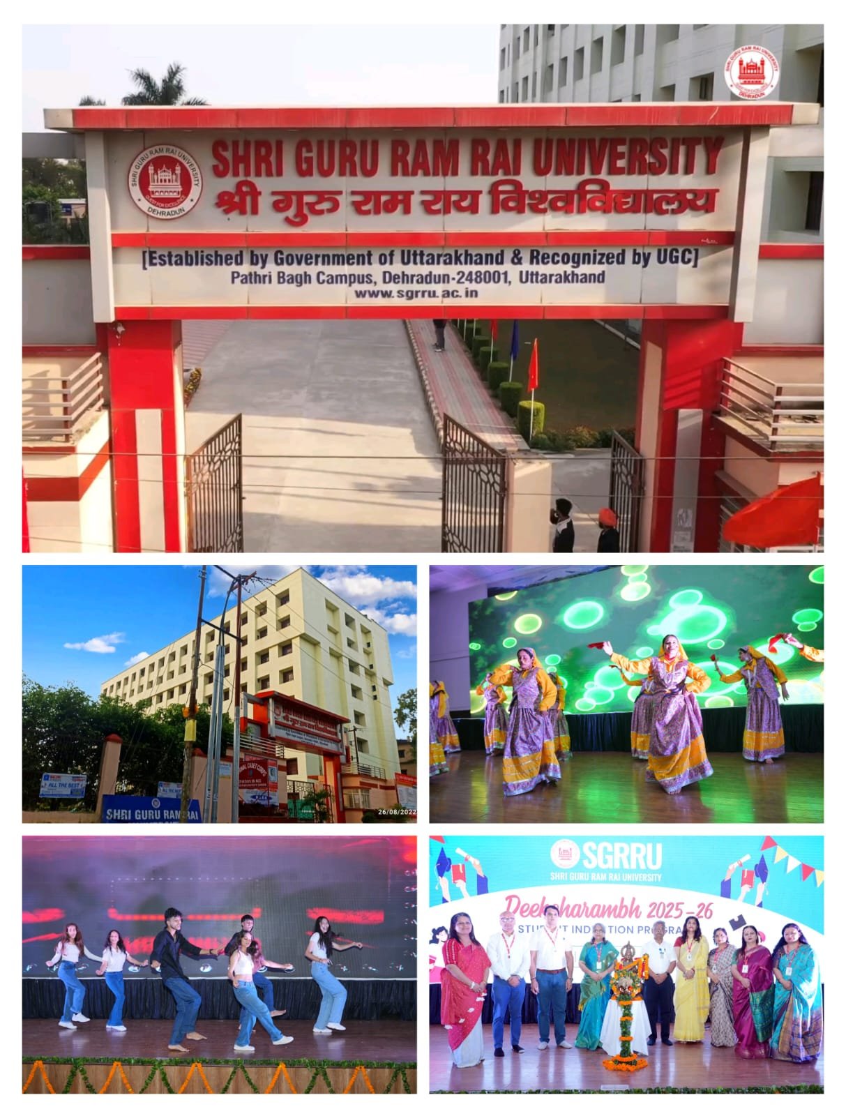 सोमवार को श्री गुरु राम राय इंस्टीट्यूट आॅफ मेडिकल एण्ड हैल्थ साइंसेज़ के सभागार में दीक्षारंभ कार्यक्रम का शुभारंभ विश्वविद्यालय की कुलपति प्रोफेसर डॉ. कुमुद सकलानी, रजिस्ट्रार डॉ. लोकेश गम्भीर तथा छात्र कल्याण अधिष्ठाता, प्रोफेसर डॉ मालविका कांडपाल के द्वारा दीप प्रज्वलित कर किया गया। नए सत्र में प्रवेश लेने वाले स्कूल ऑफ पैरामेडिकल एंड एलाइड हेल्थ साइंसेज, स्कूल ऑफ बेसिक एंड अप्लाइड साइंसेज, स्कूल ऑफ मैनेजमेंट एंड कॉमर्स स्टडीज, स्कूल ऑफ फार्मास्यूटिकल साइंसेज, स्कूल ऑफ इंजीनियरिंग एंड टेक्नोलॉजी, स्कूल आॅफ एजुकेशन, स्कूल आॅफ एग्रीकल्चरल साइंसेज़, स्कूल आॅफ योगिक साइंस एण्ड नैचुरोपैथी, स्कूल आॅफ ह्यूमैनिटीज़ एण्ड सोशल साइंसेज़ के छात्रों के लिए दीक्षारंभ कार्यक्रम का आयोजन किया गया। इस कार्यक्रम में प्रवेशी छात्रों ने बढ़ चढ़कर और उत्साहपूर्वक प्रतिभाग किया।