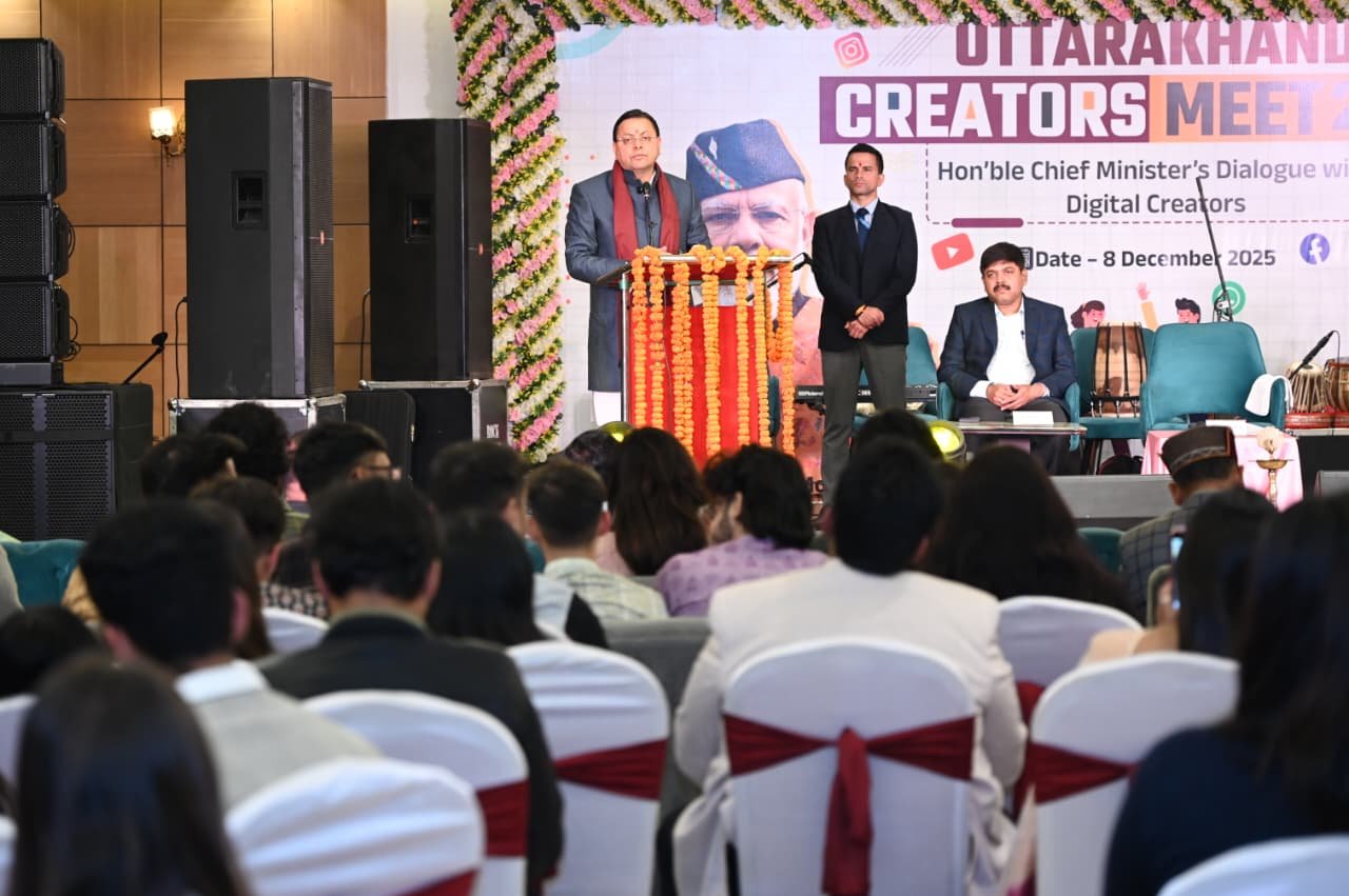 मुख्यमंत्री श्री पुष्कर सिंह धामी ने देहरादून में आयोजित “उत्तराखंड क्रिएटर्स मीट–2025” में बतौर मुख्य अतिथि प्रतिभाग किया। कार्यक्रम में विभिन्न सोशल मीडिया प्लेटफॉर्म्स से जुड़े अनेक कंटेंट क्रिएटर्स, डिजिटल उद्यमी, व्लॉगर्स तथा युवा इंफ्लुएंसर्स ने प्रतिभाग किया ।