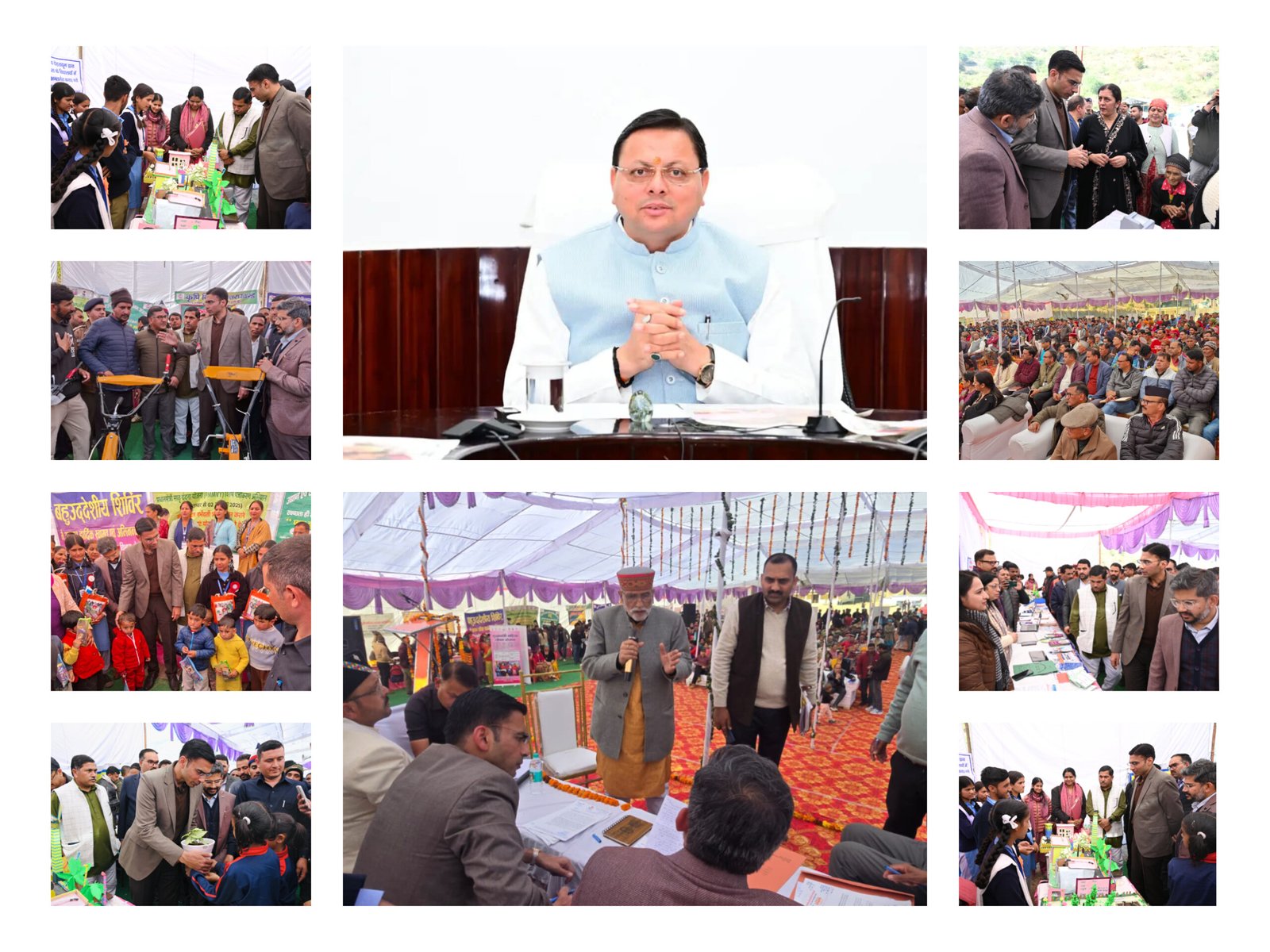 ‘प्रशासन गांव की ओर` अभियान के तहत बुधवार को विकासखंड चकराता के दूरस्थ ग्राम क्वासी इंटर कॉलेज प्रांगण में आयोजित प्रथम बहुउदेशीय शिविर में मा. जनजातीय मंत्री गीता राम गौढ एवं स्थानीय जन प्रतिनिधियों की उपस्थित में जिलाधिकारी सविन बंसल ने अधिकारियों के साथ जनता की समस्याएं सुनी।