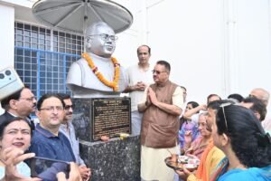 मंत्री गणेश जोशी ने मूर्ति का अनावरण करते हुए स्व० हरबंस कपूर को पुष्पांजलि अर्पित कर श्रद्धांजलि दी।